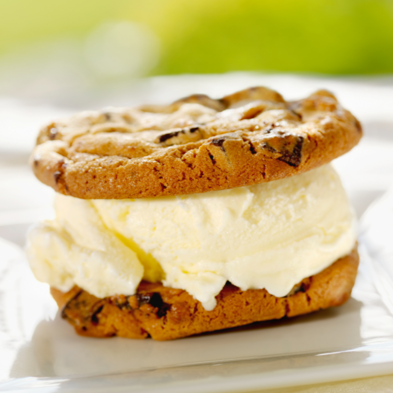 - Mini sanduíches geladas – podem colocar uma bola de gelado entre duas bolachas grandes ou waffles.